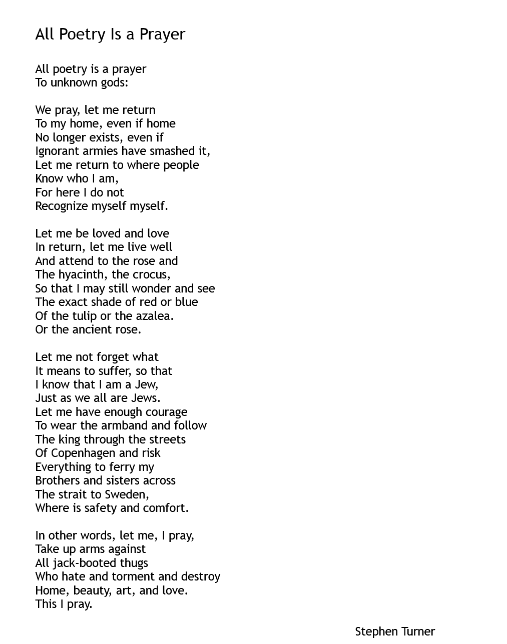I really loved the closing poem of the issue, “All Poetry is Prayer” by Stephen Turner